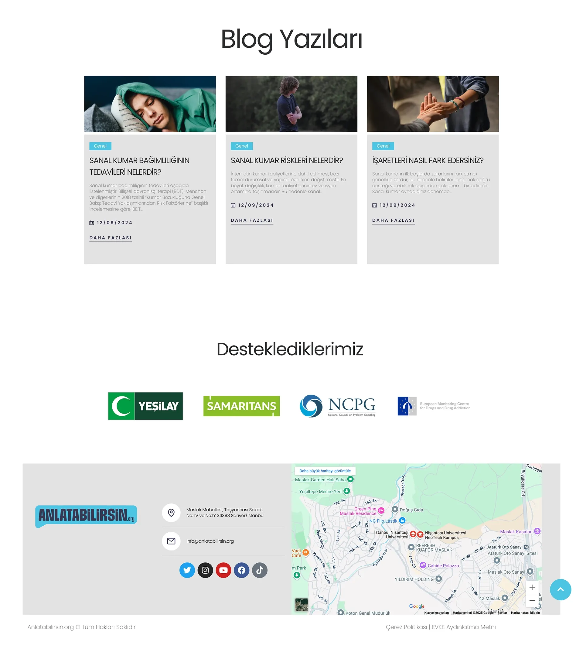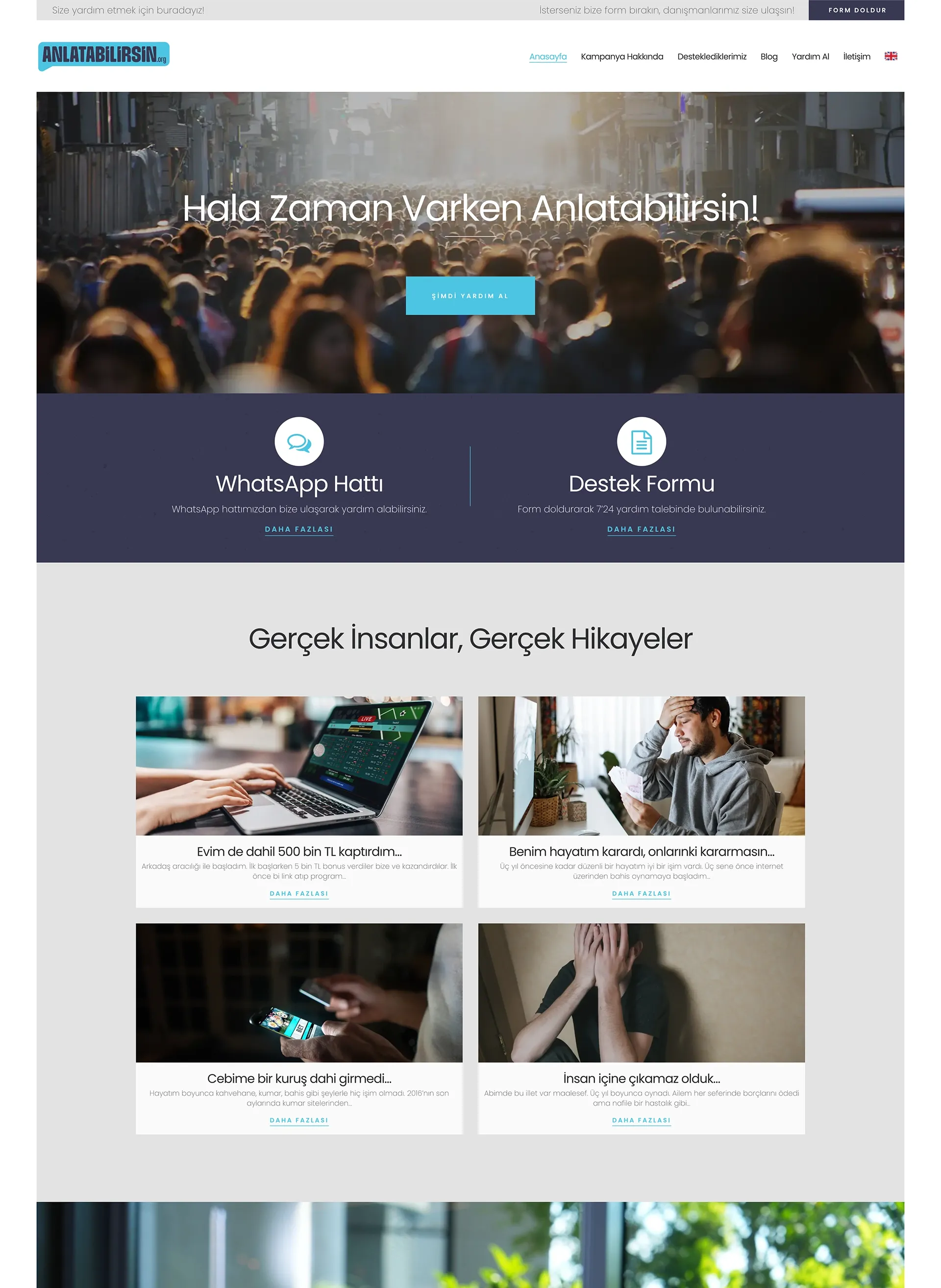 ANLATABİLİRSİN, sanal kumar bağımlılığıyla mücadele eden bireylere duygusal destek sağlamak amacıyla kurulmuş, gönüllülerden oluşan bir dayanışma platformudur. Platform, bağımlılık nedeniyle zorluk yaşayan kişilere yalnız olmadıklarını hissettirmeyi ve güvenli bir ortam sunmayı hedefler. WhatsApp ve e-posta üzerinden tamamen gizli destek verir; kullanıcılar dilerse anonim kalabilir. İlk adımı atmanın zorluğunu anlayışla karşılayan ANLATABİLİRSİN, samimi bir şekilde dinleyerek ve çözüm yolları arayarak destek olur.